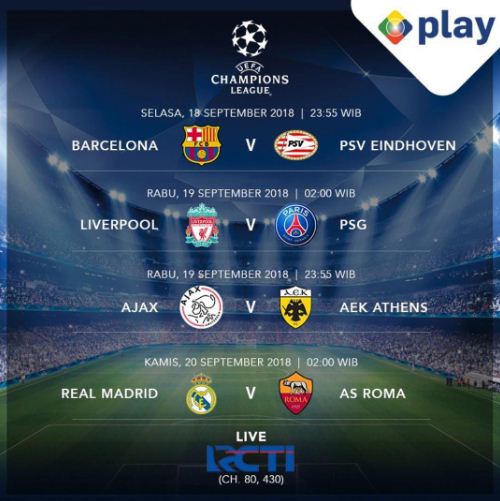 Siaran Langsung Rcti Jadwal Liga Champion Malam Ini Tribun Jogja. Selain liga inggris, liga champions, dan liga europa, rcti juga akan menyiarkan piala indonesia dan piala super eropa. Jalannya pertandingan diprediksi akan menjadi ajang adu. Di liga champions 2019/2020, bayern munchen menjadi tim paling produktif dengan melesakkan total 42 gol dalam 10 kali penampilan. Selain skor dari liga champions 2020/2021 anda dapat juga mengikuti 1000+ kompetisi sepak bola dari 90+ negara di seluruh dunia pada flashscore.co.id. Sctv merupakan stasiun televisi swasta kedua di indonesia setelah rcti, dan pada musim kompetisi ini menyajikan tayangan langsung dua kompetisi. Jadwal siaran langsung rcti final liga champions 2018/2019 tottenham hotspur vs liverpool akan disaj. First media, perusahaan penyedia layanan internet broadband dan pay tv di jakarta juga akan menayangkan siaran langsung liga champions uefa dan liga eropa uefa. Rcti miliki hak siar liga champions dan liga europa untuk 3 tahun. Tautan saluran berita saluran berita hiburan: Live streaming liga champions bisa anda tonton melalui tv online serta tv satelit berbayar langganan anda, di channel.